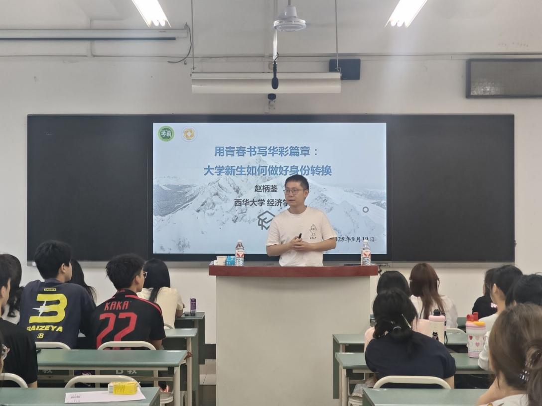 分享过程中,赵柄鉴老师还特别引用习近平总书记关于青春奋斗的重要讲话,勉励新生珍惜大学时光,既要深耕专业知识,也要积极参与实践活动,以乐观心态面对成长中的挑战,在数字经济领域找准自身定位,实现从“校园新人”到“行业后备力量”的蜕变。