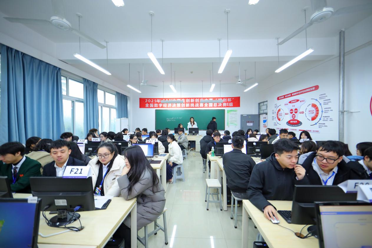 本届赛事以“主体赛事+高峰论坛”双轨模式,精准契合数字经济发展趋势与人才需求。主体赛事采用“线下+线上”双线融合机制:线下环节采用“10+5”答辩模式,即10分钟项目展示与5分钟评委问答;线上环节依托“数字经济智能对抗实训平台”,聚焦“数字经济大数据分析”实战任务,全面评估项目在技术创新、决策科学性、市场潜力、团队能力及社会价值等多维度的综合表现。高峰论坛聚焦“Ai时代金融与科技复合型人才培养的探索与实践”“数智化时代数字经济人才培养探索”“数字经济专业特色建设与发展”三大议题,与会专家分享了宝贵经验,共同探索了推动数字经济高质量发展的新路径。