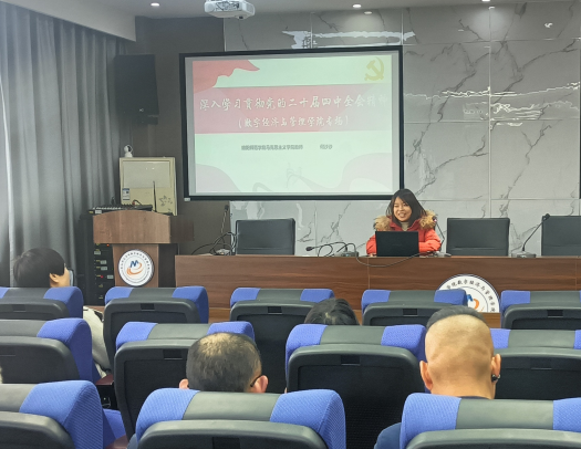 为深入学习宣传贯彻党的二十届四中全会精神和省委十二届八次全会精神,切实把全院教职工思想和行动统一到党中央和省委决策部署上来,1月8日,学院特邀学校党的二十届四中全会精神宣讲团成员、马克思主义学院教师何沙沙作专题宣讲报告。学院党政领导班子成员和全体教职工参加学习。
