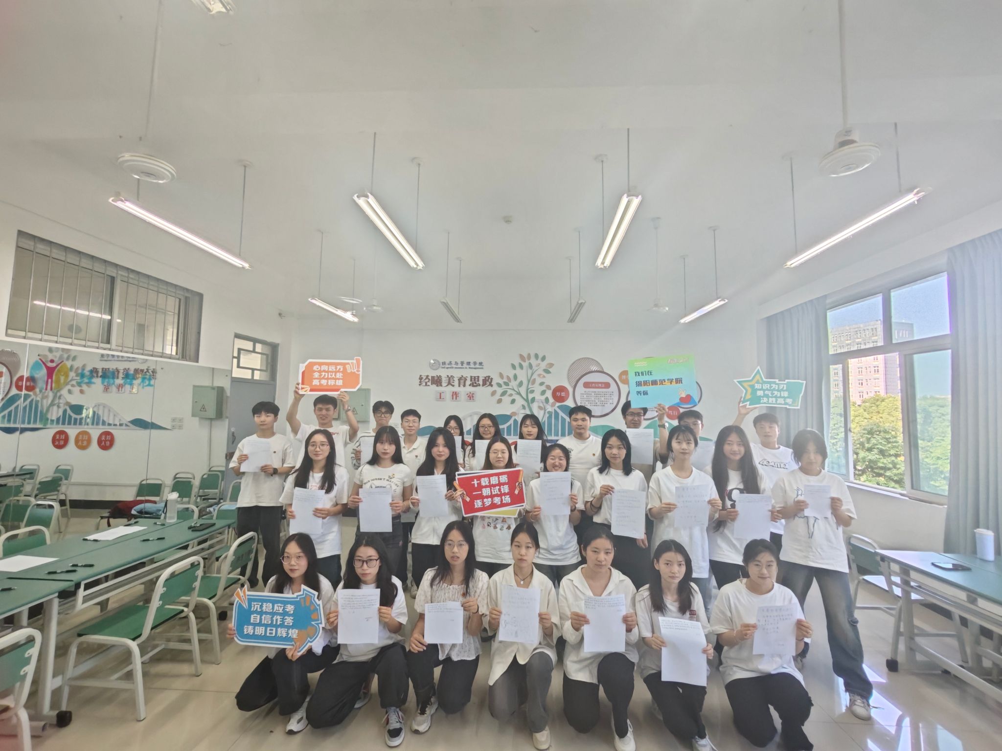 笔书寄语,用情暖学子,用心送祝福!在支部书记的带领下,党员同志们首先在“经曦”辅导员工作室中为春蕾女孩们写下高考祝福语。他们有的涂了又改,有的行云流水,用文字和图画表达对春蕾女孩的关心、祝福与期望。随后,党员们前往学校标志性建筑前录制“高考加油视频”,用真挚的语言为春蕾女孩们加油鼓劲。他们有的鼓励春蕾女孩相信自己,发挥最好的水平;有的提醒注意身体,保持良好的心态;还有的分享自己的考试经验和心得,希望帮助她们更好应对考试。