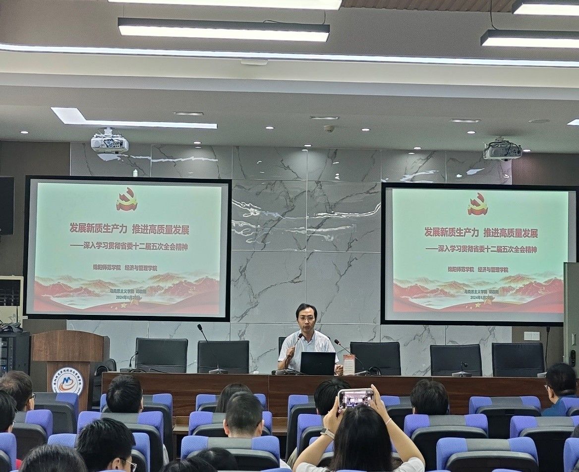 邓啟刚以“发展新质生产力,推进高质量发展”为主题,以四川省委十二届五次全会情况简介及深入学习贯彻四川省委十二届五次全会精神为主要讲解内容,重点讲述新质生产力在推动经济、社会和环境等方面的积极影响,强调高质量发展的重要性,并探讨如何通过学习新质生产力实现高质量发展。