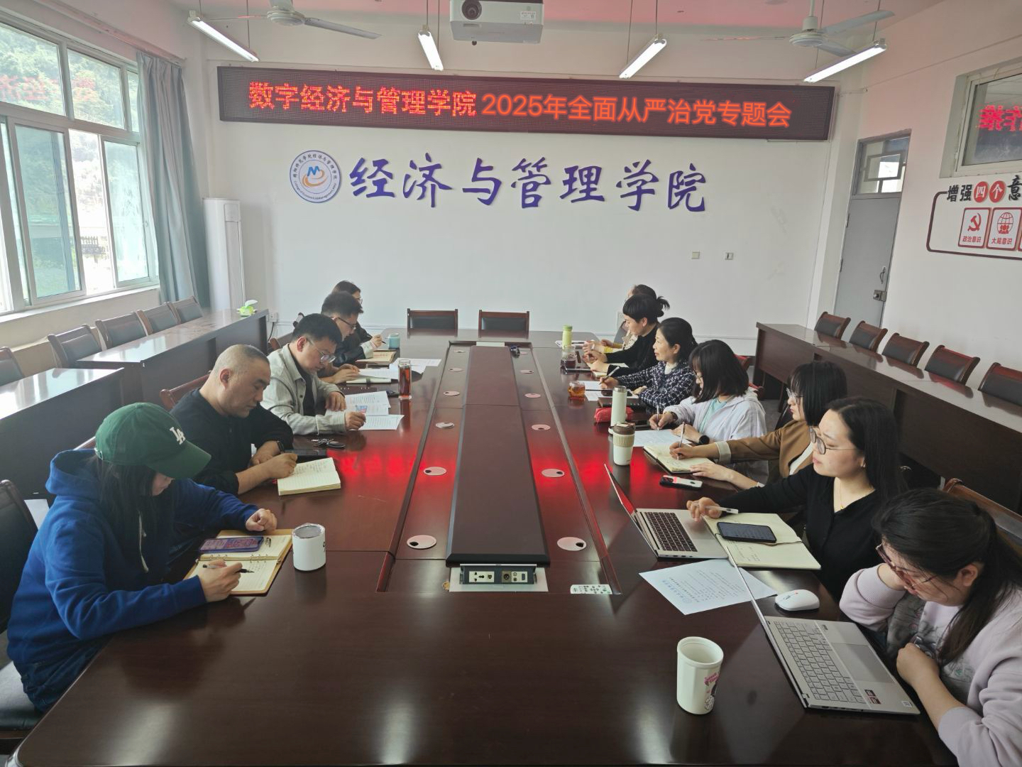 为深入贯彻落实全面从严治党战略方针,切实筑牢校园廉洁防线,4月14日上午,数字经济与管理学院在厚德楼424会议室召开全面从严治党暨党风廉政建设专题会议。院长杜漪主持会议,班子成员、纪委委员、党支部书记及科技干部、专业负责人等关键岗位人员参加会议。