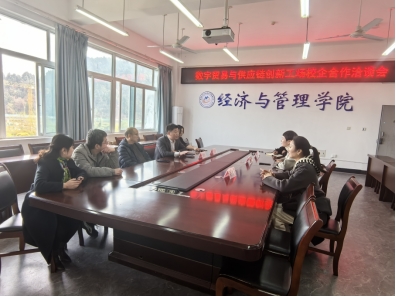 3月28日下午,绵阳综合保税区纪工委书记庞小斌、浙江宁波全球贸易通集团总裁陈建旭一行就“数字贸易与供应链创新工场”校企合作事宜来院进行交流。绵阳综合保税区产业发展部部长梁川、产业发展部副部长张鸿莉、宁波全球贸易通集团西南区总经理刘传彪、全球贸易通项目总监马文琴、经管学院杜漪院长及分管负责人参加了本次座谈会。