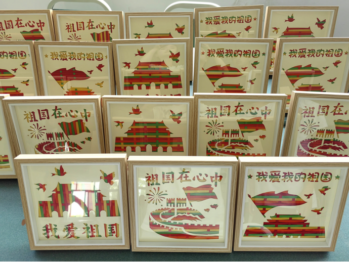活动最后,同学们手持鲜艳的五星红旗,拿着自己精心创作的作品,共同唱响激昂的《歌唱祖国》。