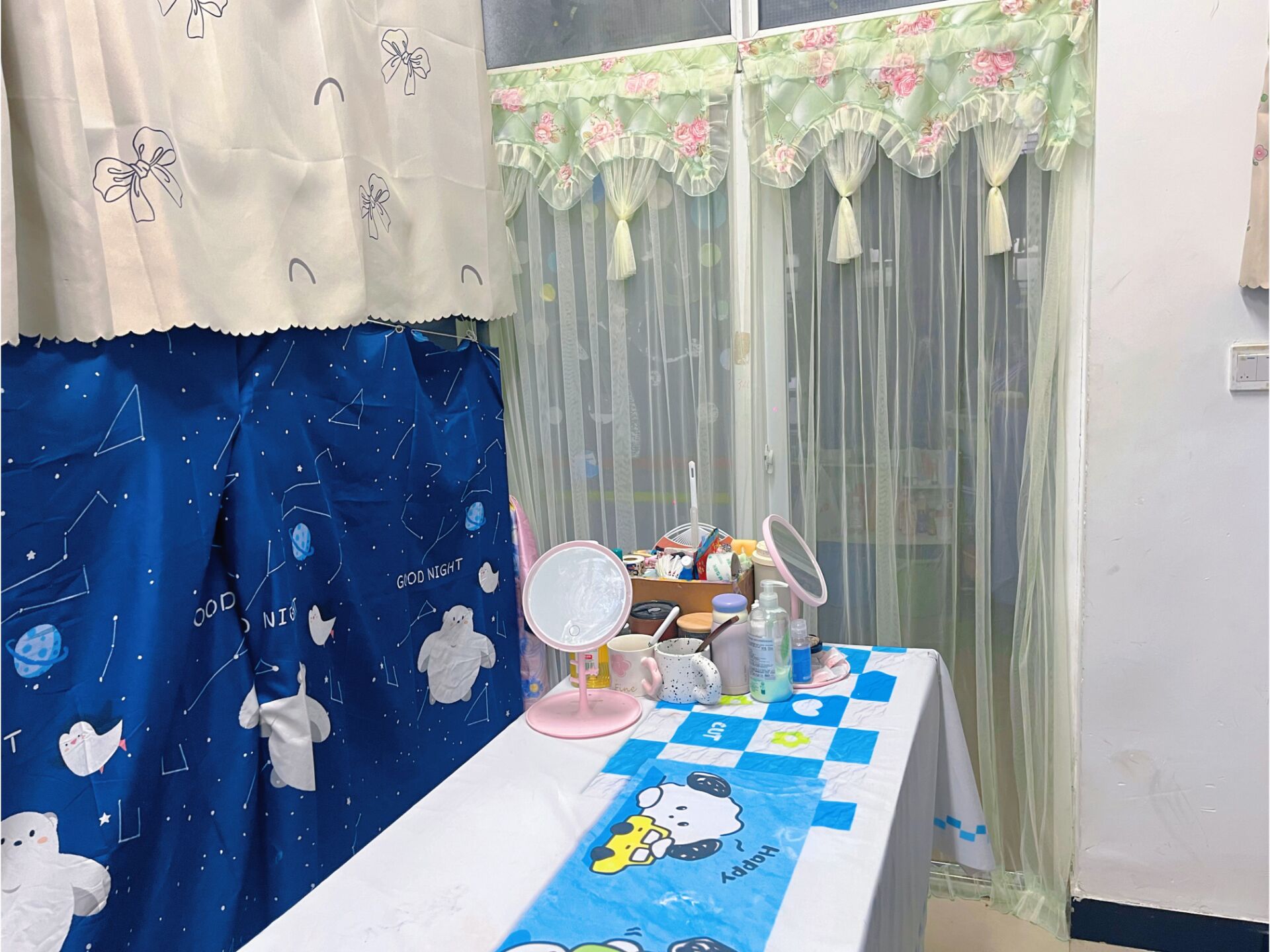活动过程中,同学们积极响应号召,纷纷投身于寝室装扮的创意实践中。大家发挥想象,结合个人喜好与审美观念,精心布置寝室的每一个角落。有的寝室以梦幻为主题,利用绚丽的灯光与精致的装饰品,营造出温馨浪漫的氛围;有的寝室则充满童趣,玩偶、贴纸等元素的巧妙运用,让寝室焕发出活泼俏皮的气息;还有的寝室秉持简约理念,通过整洁有序的物品摆放,展现出清爽舒适的居住环境。这一过程中,同学们不仅锻炼了动手能力,更在实践中培养了审美能力和创新思维,深刻体会到了美育与劳动教育的魅力。