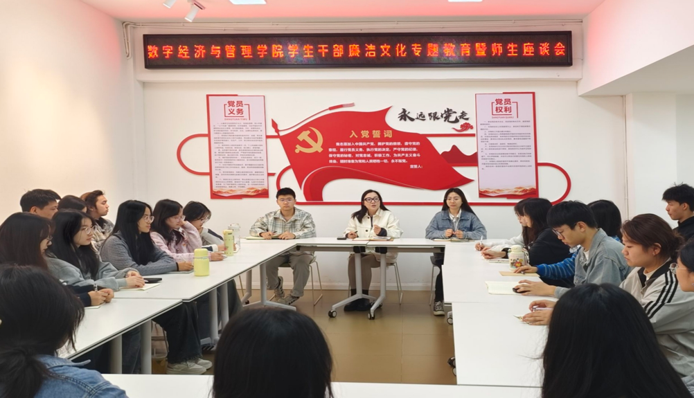 10月21日中午,数字williamhill中国在学生宿舍三栋“一站式”学生社区召开2025年秋季学期学生干部廉洁文化专题教育暨师生座谈会。学院党委副书记、纪委书记李杨,罗小芳老师、肖俊楠老师以及全体团学干部参加会议。